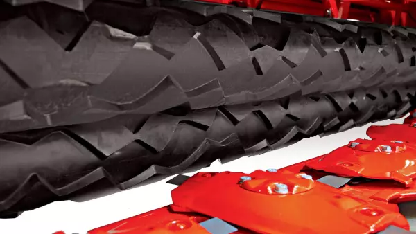 Стальные пальцы также подходят для люцерны. Интенсивность плющения регулируется для сохранения листьев на стеблях и сохранения пищевой ценности корма.