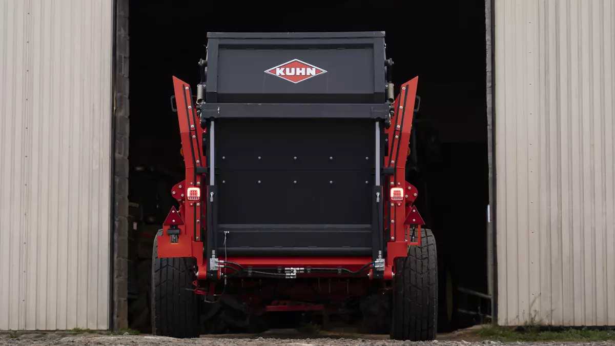 V-образная форма бункера облегчает загрузку сверху (например, при загрузке силоса). Благодаря ширине бункера 1,40 м на уровне транспортера и 1,65 м в верхней части бункера, будет также облегчена без риска зацепления загрузка круглых и кубических тюков сзади.